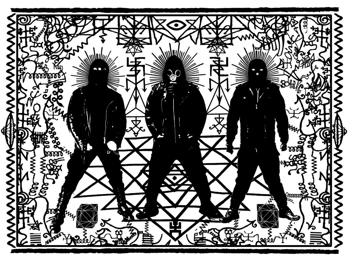 Hoodies and gasmasks. Buzzing flies. Esoteric noise and grueling black/death paired for maximum psychic warfare, set to unrelenting blasts. If you're the type of maniac who clamors for maximum pain, more more more, harder and faster, Tetragrammacide would like a word. It's not that they're especially hard to listen to -- there are discernible riffs, even things resembling melodies, and the production is surprisingly clear considering the aesthetic -- but the presentation of all the elements, visual and sonic, are just so blown-out and ridiculous in combination, unlike much of anything in their depths of hilarious brutality. Exhibit one: the visuals. I invite you to gaze upon the batshit press photo, replete with retro Xerox war metal vibes and weird shamanic esoterica; also, the schizophrenic glory of the album art. Exhibit two: the visionary pseudo-intellectual gobbledygook song titles. The first single, as you can see, is called "Cyberserking Strategic Kalpa-Terminator (Advanced Acausality Increment Mechanism)." The second, "Hyperspatial Mandala of Intuitive Latencies / Prognosticators of Transyuggothian Metareasoning", is just as good. Exhibit three: just listen to this shit. There are riffs buried under the din, but the intensity is on 11 from the word go. It's hard to capture ultraviolence on tape that doesn't just annihilate the listener, but this one somehow keeps me coming back for repeat listens, even when it feels like my ear drums are being peeled from the inside. Nonsense times call for nonsense tunes. [From Primal Incinerators Of Moral Matrix, out 11/3 via Iron Bonehead.] –Aaron Lariviere