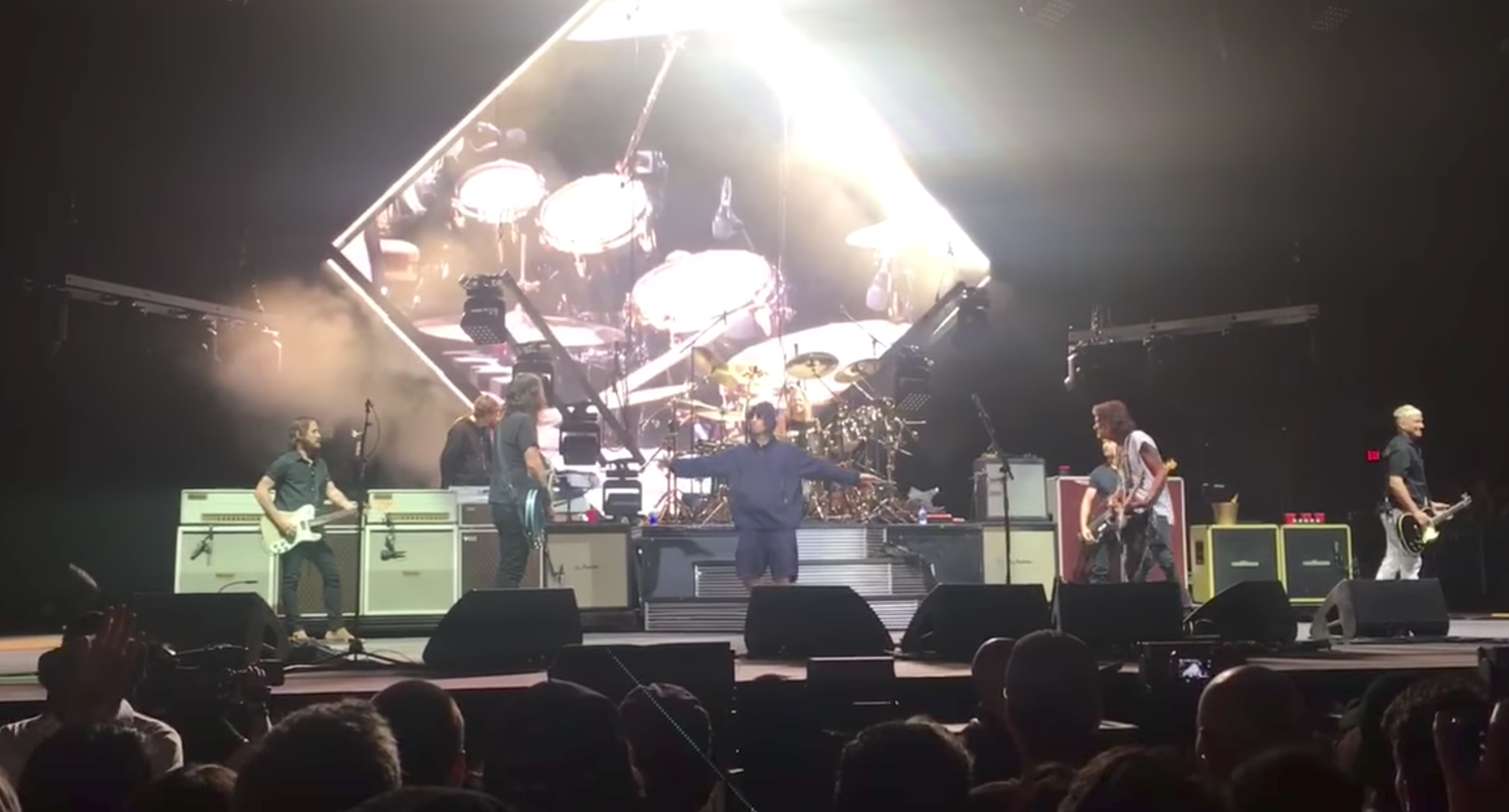 Foo Fighters threw their Cal Jam music festival in San Bernardino, California yesterday. In addition to performances from Queens Of The Stone Age, Japandroids, Bob Mould, Babes In Toyland, and more, the fest featured a headlining set from Foo Fighters, during which the band was joined by Liam Gallagher and Aerosmith's Joe Perry for a cover of the Beatles' "Come Together." Watch below via Pitchfork.