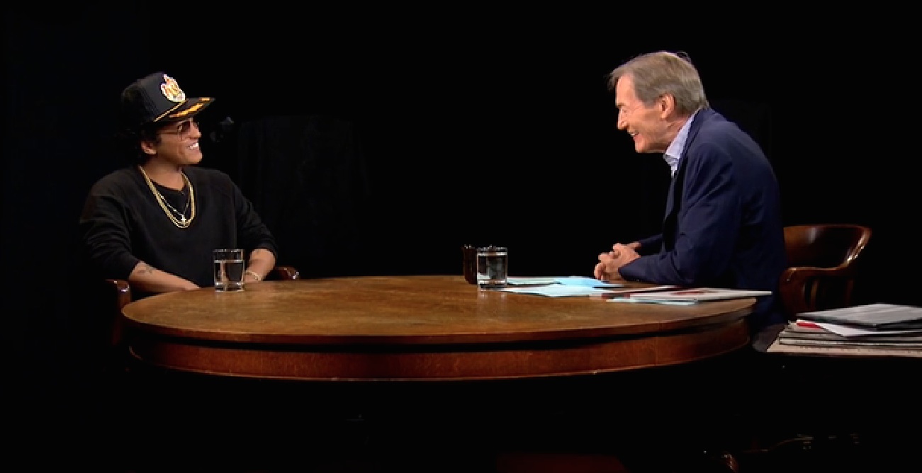 It's a bit of a weird pairing: The relentlessly entertaining pop star Bruno Mars on the relatively dry and cerebral PBS talk show Charlie Rose. But if you're the booker for Charlie Rose and you can get Bruno Mars, why wouldn't you? Mars was a guest on last night's show, and he even blessed the show with an acoustic performance of his slick chart-topper "That's What I Like." The best part of that: Even in a sedate environment like that, Mars keeps his omnipresent backing singers with him, and he does synchronized dances with them. While sitting down. Below, watch the performance, as well as the interview where Mars talks about his inspirations and his process.