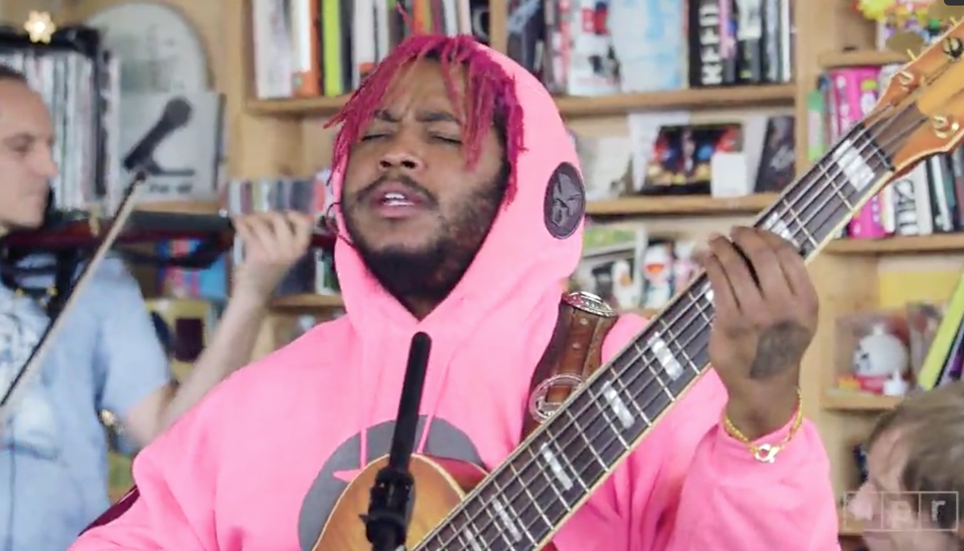 When the way-out bass master Thundercat showed up to the NPR studios to record his Tiny Desk Concert, he came in purple dreads, a pink hoodie, and tiny red-and-yellow kickboxing shorts. But while Thundercat cuts an outsized figure, he's also an old-school virtuoso. During his Tiny Desk Concert, the man and his three-piece band played three tracks from the new album Drunk (including the deeply petty "Friend Zone"), and they flexed some serious soul-jazz instrumental muscle. Watch the performance below.
