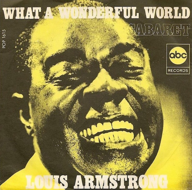 It might've sounded like a phony sentiment at the time to many, at least enough to actually force Armstrong's hand after the fact. Though his own "wonderful world" he envisioned during his performances was centered specifically around the neighborhood in Queens where he lived and the three generations of families that formed the community, he made a point during a 1970 performance to justify what would become one of his biggest signature songs: "'Hey Pops, what you mean what a wonderful world? How about all them wars all over the place? You call them wonderful? And how about hunger and pollution? That ain't so wonderful either.' Well how about listening to old Pops for a minute. Seems to me, it ain't the world that's so bad but what we're doin' to it. And all I'm saying is, see, what a wonderful world it would be if only we'd give it a chance. Love, baby, love. That's the secret, yeah. If lots more of us loved each other, we'd solve lots more problems. And then this world would be better." So there's another line to draw between irony and sincerity -- and a few versions of this song on both sides (sometimes simultaneously).