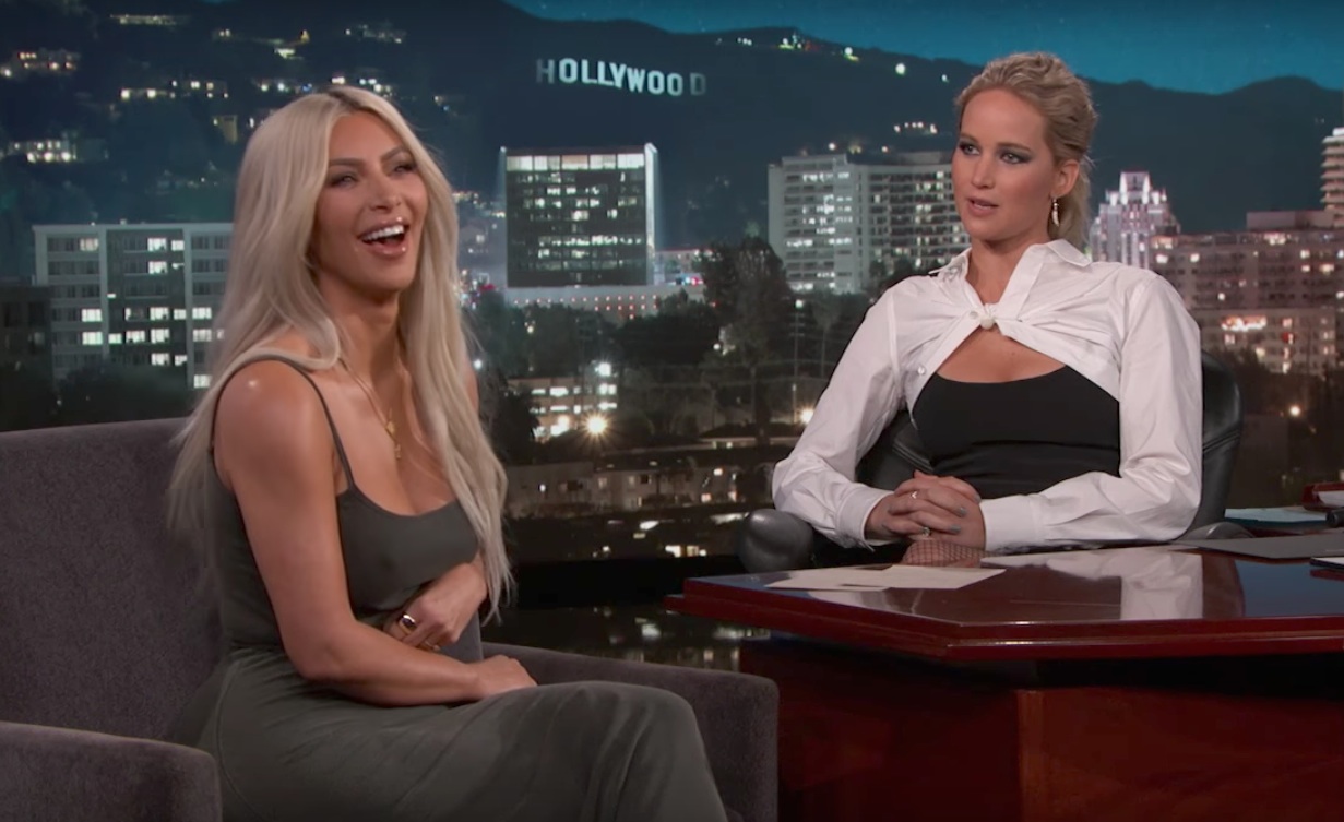 Jimmy Kimmel has taken the week off of his talk show, and he's let a parade of celebrities guest-host for him, which has been fun. On Halloween, Dave Grohl dressed up like present-day David Letterman and performed a Frozen/Metallica mash-up with Kristen Bell. Last night, the guest host was Jennifer Lawrence, who, even after Passengers and mother!, is one of our last real movie stars left. Lawrence loves talking about how much she loves Keeping Up With The Kardashians, and her lead guest, fortuitously enough, was Kim Kardashian West. This was a fun version of a typical late-night interview, with Lawrence gushing a lot and talking about getting falling-down drunk with Kris Jenner. She also asked things about Kanye West. For instance: "Do you and Kanye, like, fart in front of each other?" Also: "What is the weirdest thing Kanye does?" Also: "Has Kanye ever written songs about you that we don't know about?" And when Kim told a story about a boyfriend cheating on her, she asked if Kim married him. Watch it all happen below.