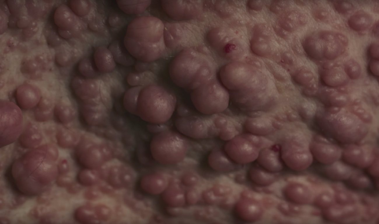 Earlier this year, Flying Lotus released his feature-length directorial debut Kuso, a surreal and phantasmagoric body-horror movie. Today, he's followed it up with a new short film called Skinflick. FlyLo directed the film as "steve," his filmmaking alias, and he also put together its score. The film gives a portrait Bob Heslip, a performer who works under the name Bumpy Bob The Bubble Boy. Most of the three-minute short film is extreme close-up sof Heslip's skin, which looks almost like a lunar landscape under FlyLo's camera. Because of a skin condition and tumor disorder, Heslip's body is covered with bumps. In a press release, FlyLo says, "He is a lovely man and I wanted to make a film that would honor the beauty of his unique condition." Watch it below.