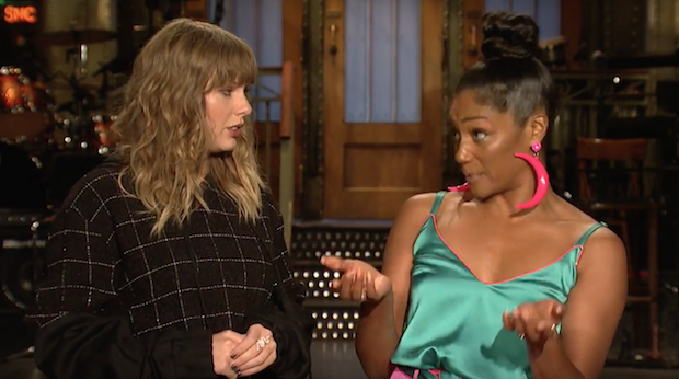 Now that Reputation is finally out, Taylor Swift is breaking her media silence just a little bit to appear on Saturday Night Live this weekend. Her requisite SNL promo has just been released, and it's an awkward bit with guest host Tiffany Haddish about who the songs on the album are about. See below...