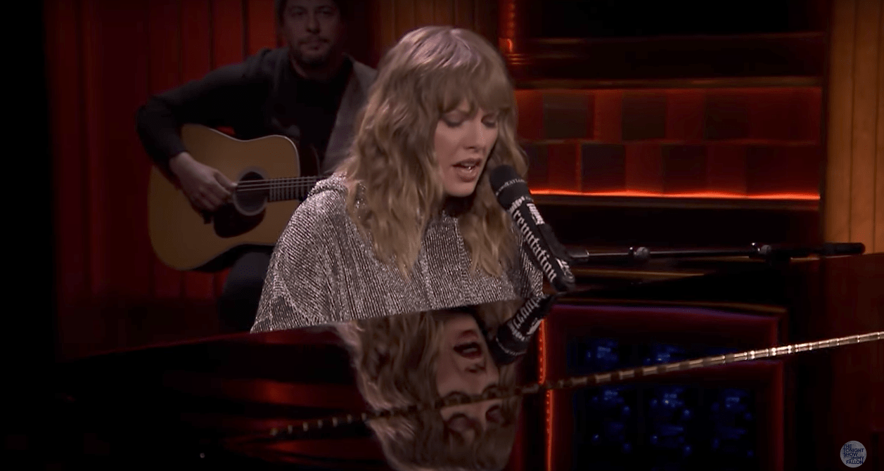 Taylor Swift released her new album, Reputation, last week and one of its best songs is called "New Year's Day." It's the final track on the album, and Swift performed it live on Fallon last night. According to a Mike DiCenzo, a writer/producer on The Tonight Show, Swift wasn't scheduled to perform, but Fallon asked her if she'd guest knowing that she was already in town for her SNL appearance. It was Fallon's first night back after his mom passed away and he wanted to return to the late night stage with something extra special. Apparently, Swift agreed to perform without hesitation, and the result is a lovely rendition of "New Year's Day." Watch below and read our review of Reputation here.
