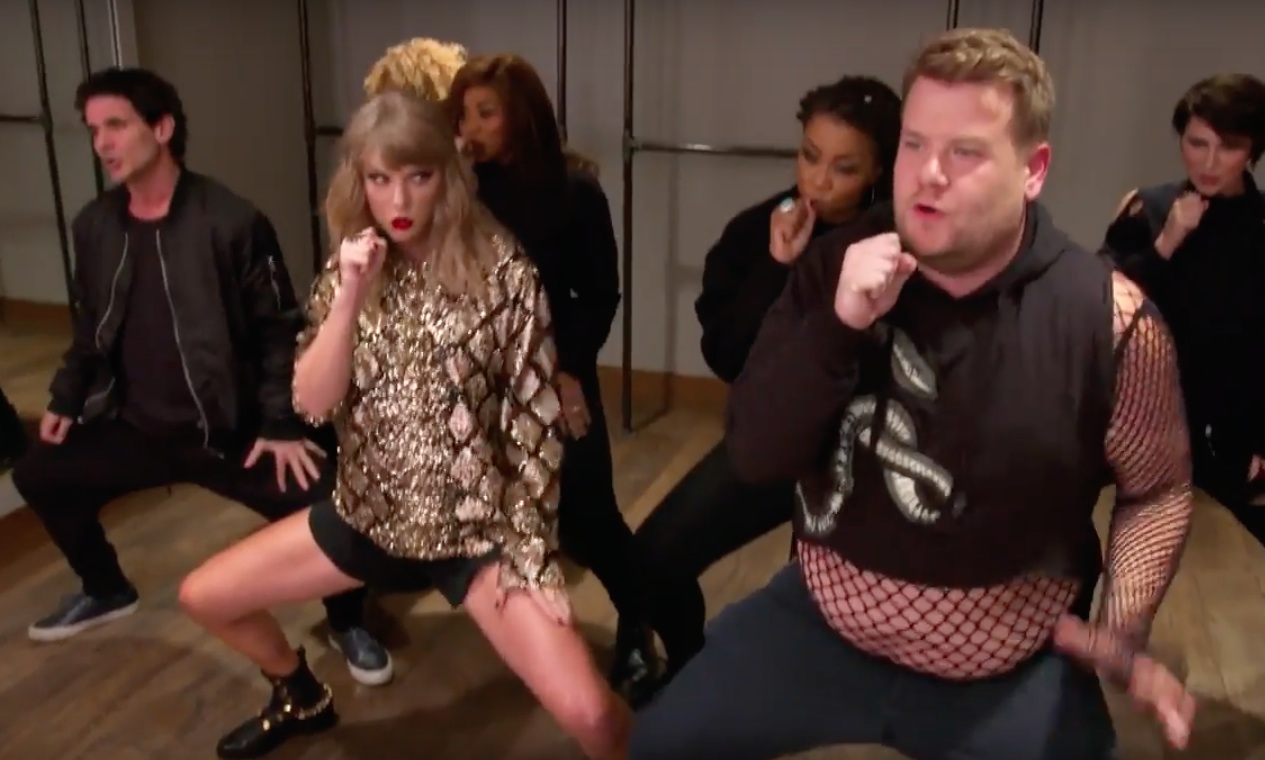 Eager-to-please British late-night host James Corden may have reached a new apex of jolly starfuckery. On last night's episode of his Late Late Show, Corden recorded an endless 14-minute comedy bit backstage at a big Jingle Ball pop concert in Los Angeles. In the clip, Corden takes over as general manager of the Forum, which means he gets to mug frantically with people like Ed Sheeran, Sam Smith, Demi Lovato, and former One Direction members Niall Horan and Liam Payne. This whole thing reaches its apex when Corden attempts to become a backup dancer for Taylor Swift. Watch the hilarity unfold below.