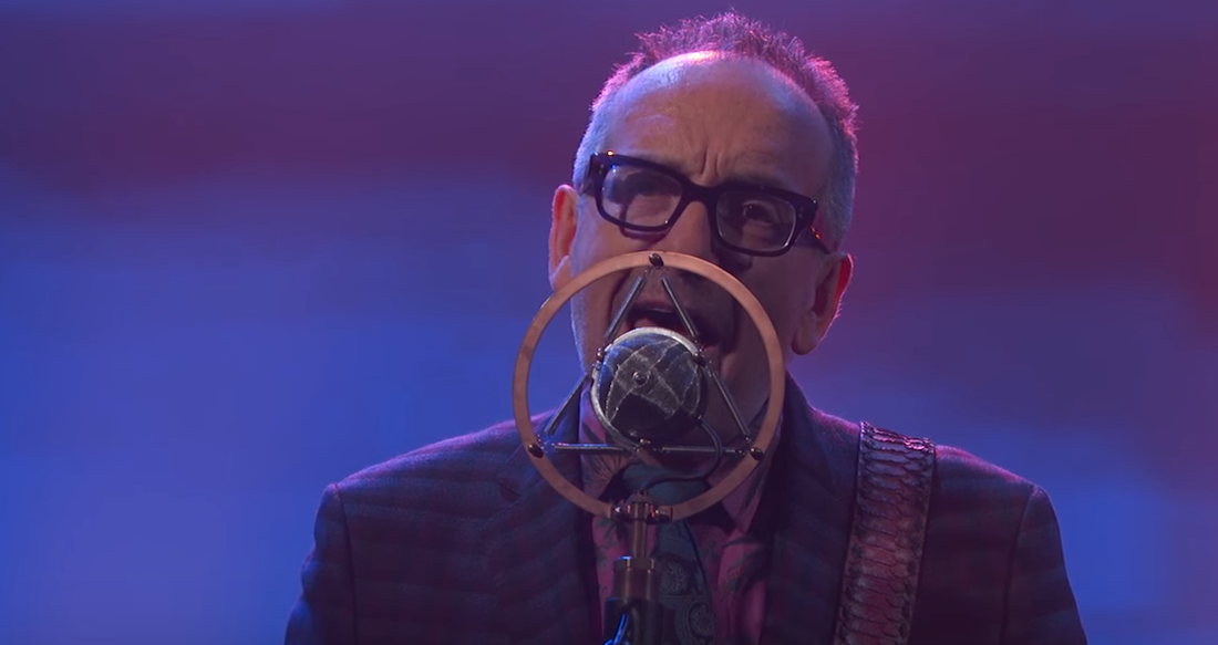 Elvis Costello was a guest on Jimmy Kimmel Live! last night, where he played two songs from opposite ends of his career. He paired a piano-based reading of "You Shouldn't Look At Me That Way" -- a song he contributed to the Film Stars Don't Die In Liverpool soundtrack -- with a tender, stripped-down version of his 1977 classic "Alison" with some help from two backup singers. Watch his performances below.