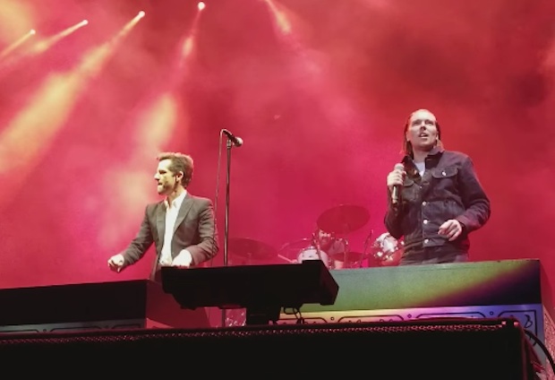 Last year, Alex Cameron, the cheerfully sleazy and '80s-indebted Australian singer-songwriter, released his Forced Witness album. One of its highlights was "Runnin' Outta Luck," a song that Cameron and his saxophonist Roy Molloy co-wrote with the Killers frontman Brandon Flowers. Lately, Cameron has been opening for the Killers on tour. And for the last two nights, he and Molloy have been coming out during the Killers' encores to sing "Runnin' Out Of Luck" with the band. It's the sort of thing that might convince you that the Killers need a full-time saxophonist. Watch a fan-made video of one of those performances below.