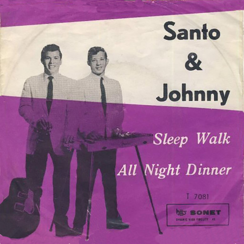 Santo and Johnny Farina were two young brothers from Brooklyn. The legend is that their father decided that they should learn to play steel guitar because he'd heard it on the radio when he was in the Army, stationed in Oklahoma. "Sleep Walk," their first single, isn't a country song or a Hawaiian song. Instead, it's pretty standard of the slow, ornate R&B ballads that were popular in the era. But the difference, of course, is that it's an instrumental. And in the place where the vocal would ordinarily be, we get that lonely, wandering steel guitar.
