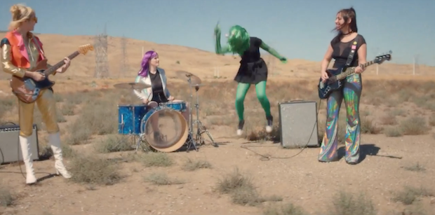 To celebrate, they're sharing a fun video for early single "High St." It was directed by CJ Harvey and starts off at what looks like a bummer of a suburban house party, but turns into a daydream (some would say a ..... deep dream) in which the bandmates meet up in the desert and encounter a green alien, who they befriend and rock out with. They bring the alien back to the party, which significantly livens up with an extraterrestrial presence and ends on a note that's very endearing and Alien's First Big Party.