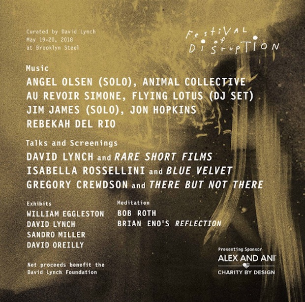 Last year, filmmaking legend David Lynch curated and presented the Festival Of Disruption, which brought a fascinating array of artists to Los Angeles. This year, the Festival Of Disruption is coming back. But this time, it switch coasts, coming to the new New York venue Brooklyn Steel.