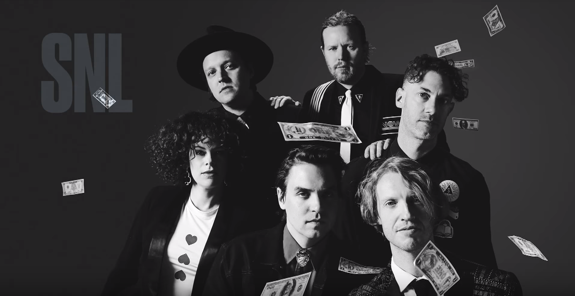 Arcade Fire were the musical guests on last night's episode of Saturday Night Live, performing "Creature Comfort" and "Put Your Money On Me" from their most recent album Everything Now. And while they were there, the Canadian indie-rock heroes also made a brief appearance in a sketch poking fun at Canadians' reputation for being overly polite and apologetic. Bill Hader played the "Canadian Harvey Weinstein," a movie producer who resigned after feeling terrible for making relatively benign comments like "you look nice today" and "That's a nice sweater you got there," and Arcade Fire played themselves, going on a fake talk show to apologize for working with him. Watch the sketch and the band's musical performances below.