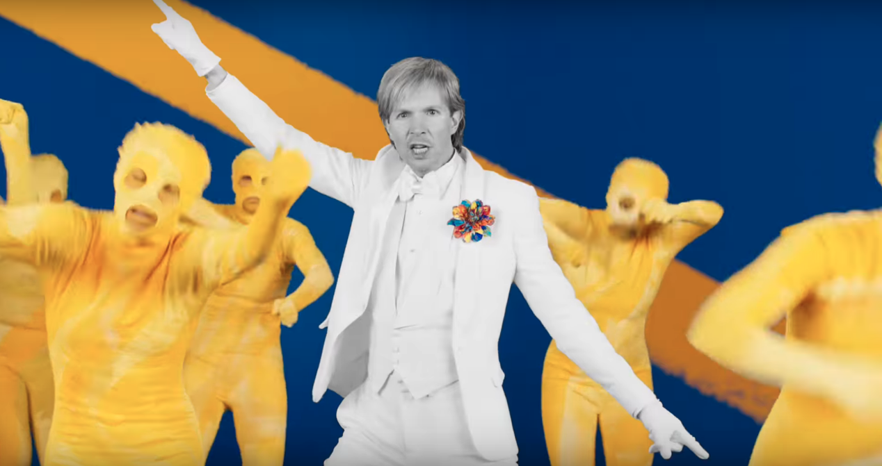 "Colors," the title track from the divisive album that Beck released last year, is a bright and shimmery song, and its video is just as bright. In the clip, Beck co-stars with G.L.O.W./Community/Mad Men star Alison Brie. Both Beck and Brie dance with a troupe of jumpsuited, ski-masked goons, and everything is either bright blue or bright yellow. It's like a surreal mutation of an old movie-musical number.