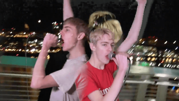 Last month, Turtlenecked -- the Portland-based project of Harrison Smith -- shared "Underwear," the first single from his upcoming new High Scores Of The Heart EP, the follow-up to last year's Vulture. Today, he's back with another song from it, "To-Day," a revved-up synth-pop song about carpe diem-ing all over the place. It comes with a music video, where layers of Smiths dance to the track (one in a very cool "Supercut" shirt). There's a very meta moment where he texts with Ian Cohen, who wrote a sorta-negative Turtlenecked Pitchfork review. (Ian Cohen also writes for us sometimes. Hey, Ian.) Check out the new song and video via The Fader below.