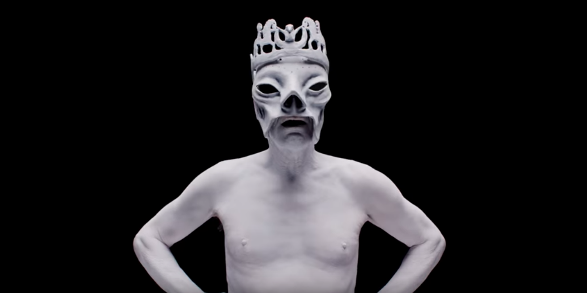 The video is simply titled "EBW 12" and it shows figures painted in white wearing masks andheadpieces. The clip is 14-seconds long and it features a snippet of new music.