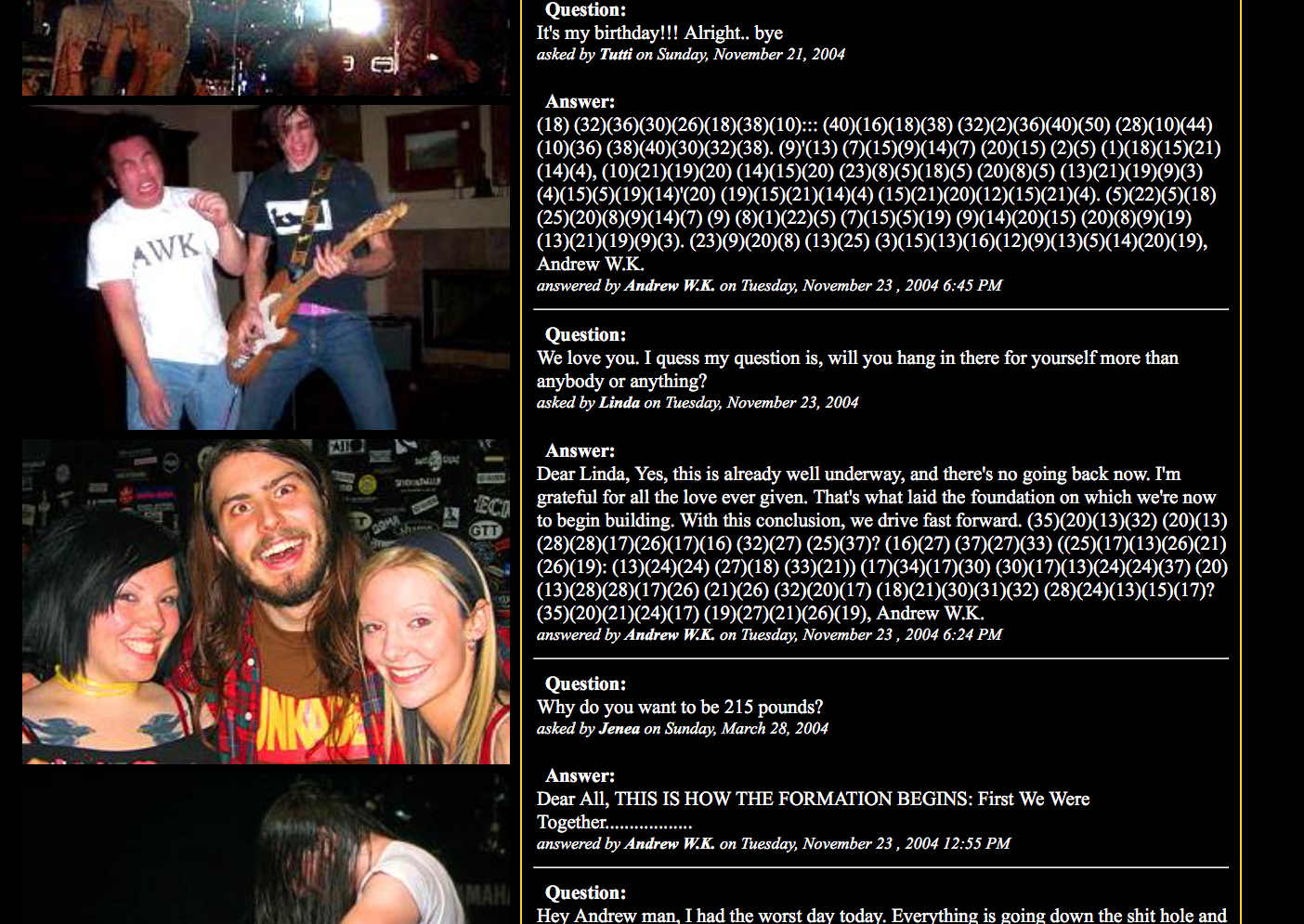 In fact, I think Andrew W.K. wrote every single word on that whole entire site -- except for the words he stole from someplace else and credited to somebody who does not exist.