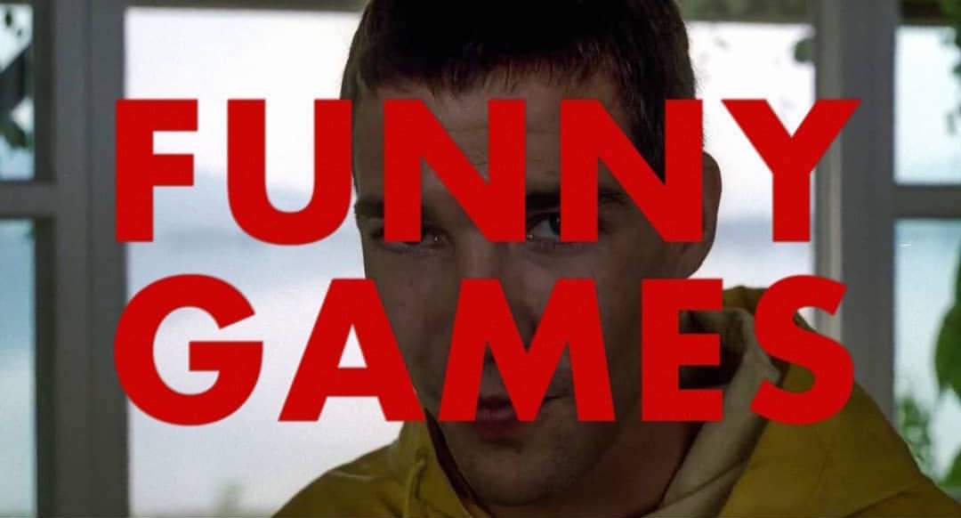 As I write this, actually, it occurs to me there could be more to that analogy than a shared sense of horrifying irony. Haneke's original German-language version of Funny Games was released in 1997, a couple years before the official arrival of Andrew W.K., and it wouldn't surprise me to learn that the film had served as a mood board for W.K.'s aesthetic, if not the music's lyrical content. In any case, whether by coincidence or design, the two things share numerous notable similarities. For instance, the two projects' respective title cards seem of a piece with one another.