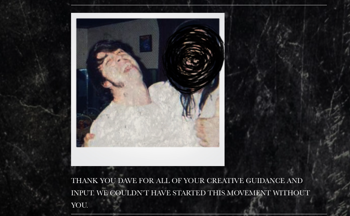 THANK YOU DAVE FOR ALL OF YOUR CREATIVE GUIDANCE AND INPUT. WE COULDN'T HAVE STARTED THIS MOVEMENT WITHOUT YOU.