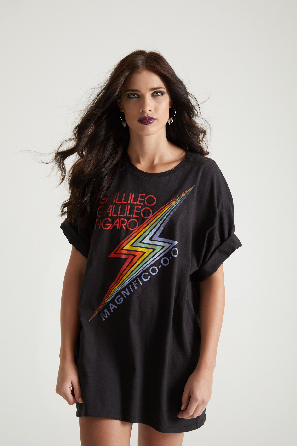 As Billboard points out, Wrangler has partnered with music lifestyle brand Lyric Culture on a Bohemian Rhapsody clothing line featuring T-shirts, jeans, and jackets emblazoned with Queen lyrics -- just like Freddie Mercury would have wanted, and undoubtedly worn. The garments reportedly feature words from songs including "Killer Queen" and "Don't Stop Me Now." And for your consideration, here's a very colorful T-shirt with lyrics from Wayne and Garth's beloved "Bohemian Rhapsody" itself: