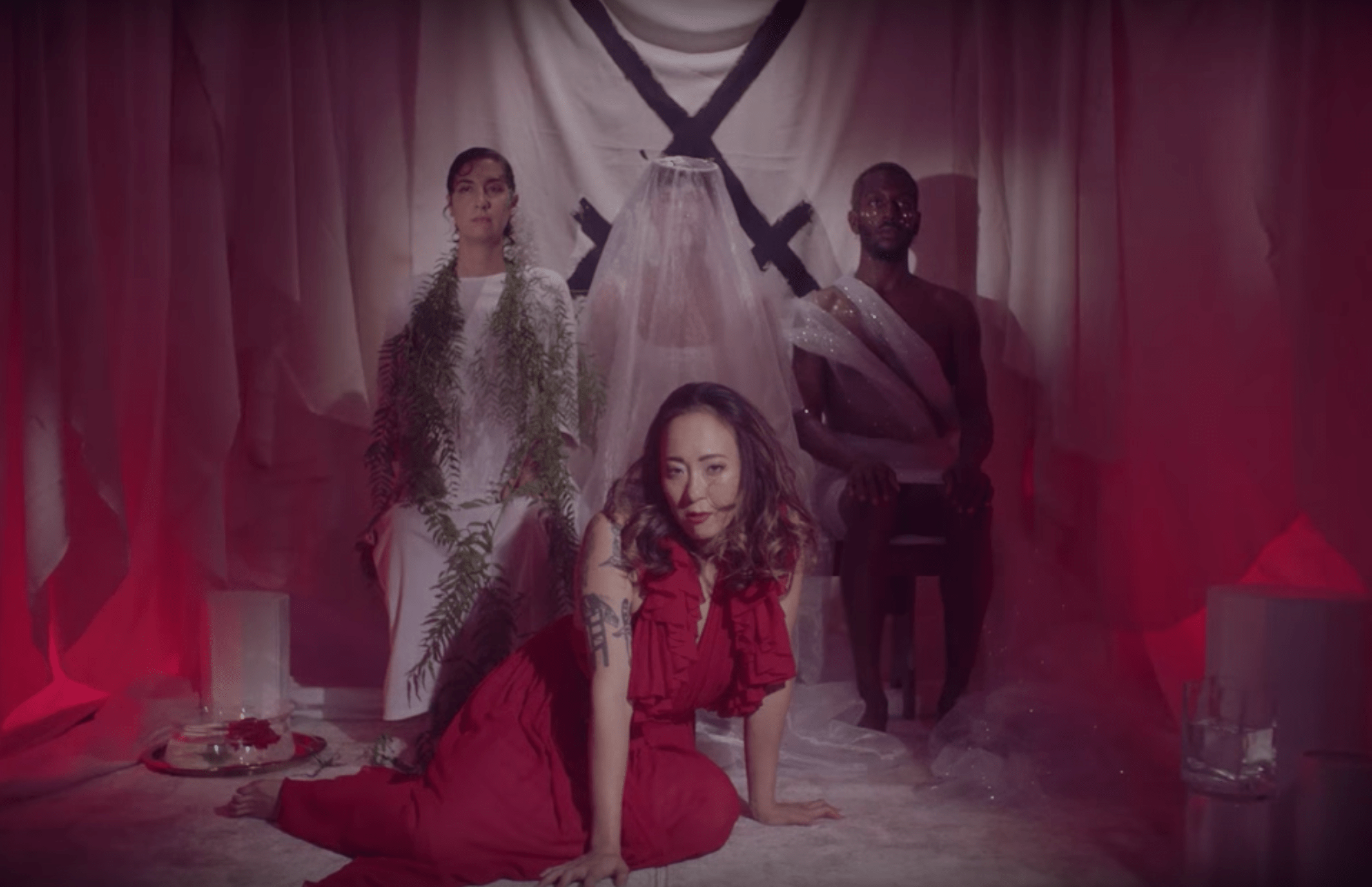 The Seo and Anna Liantes-directed video continues with the bizarre ceremony. Seo sprawls in a baby pool covered in white netting. She then stretches, does some sit ups, and pulls a string through the center of her tongue, letting the blood run down her chin. By the end, she’s bludgeoned with what appears to be a small cast iron skillet. Watch and listen below and check out the entire Girl With Basket Of Fruit's tracklist.