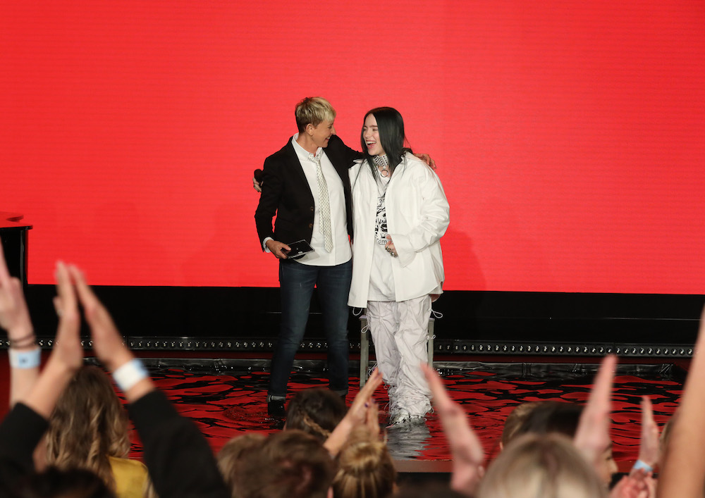 Eilish is continuing her promotional kick this week, after a late-night performance on the eve of her album's release. She appears on The Ellen DeGeneres show today to perform "When The Party's Over," and in interview segments she also addresses her Tourette Syndrome and gets scared by a fake Justin Bieber. (Fun fact: Noted Eilish fan Dave Grohl was in the Ellen audience to watch her.)