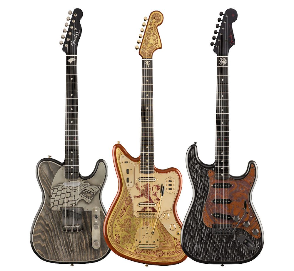 "Ron Thorn at Fender has built three beautiful, GoT-inspired works of art, and you can out-shred your enemies with all of them," Game Of Thrones co-showrunner D.B. Weiss said in a press release. "The craftsmanship and attention to detail reminds me a lot of what we saw in our costume and armory shops, and on our sets. I hope these make a few other people 1/1000th as happy as they make me."