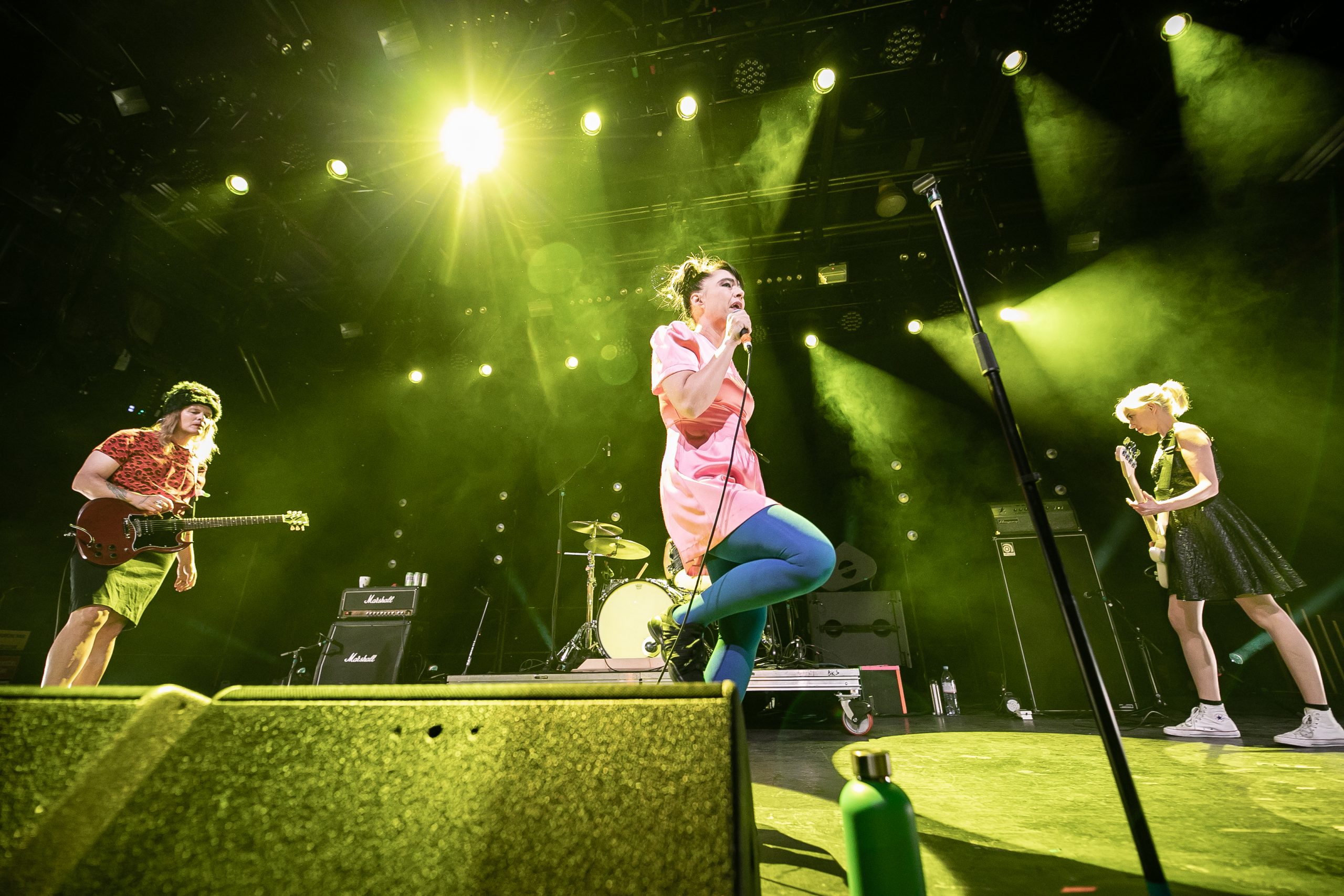 The mood stayed light, but Hanna later dedicated "Feels Blind" to "all the artists and activists in the crowd who aren't giving up." After "This Is Not A Test," she looked out at the churning pool of people in the pit and started talking about reclaiming our collective witchcraft. "Times are bleak! We cannot hide our magical forces," she said. "We need to set up some abortion clinics in Alabama, penthouse apartment style." Later, she commented on the new St. Vincent-produced Sleater-Kinney single, saying that it's "a new direction for them," which is certainly true. Vail took over the mic throughout the night, stepping in to sing while Hanna played bass. It felt appropriate that they asked Palberta to open the show, a band that shares their scrappy punk ethos, swapping instruments from song to song.