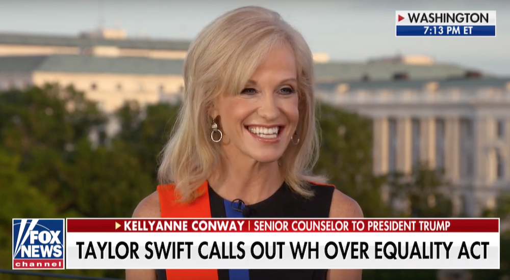 Also weighing in on Swift's call to action was Kellyanne Conway, who appeared on Fox News and was asked to address Swift's VMAs performance. She reiterated the White House talking points and said that she likes "the new Taylor Swift song" and proceeded to sing a line from "You Need To Calm Down." Watch the clip below.