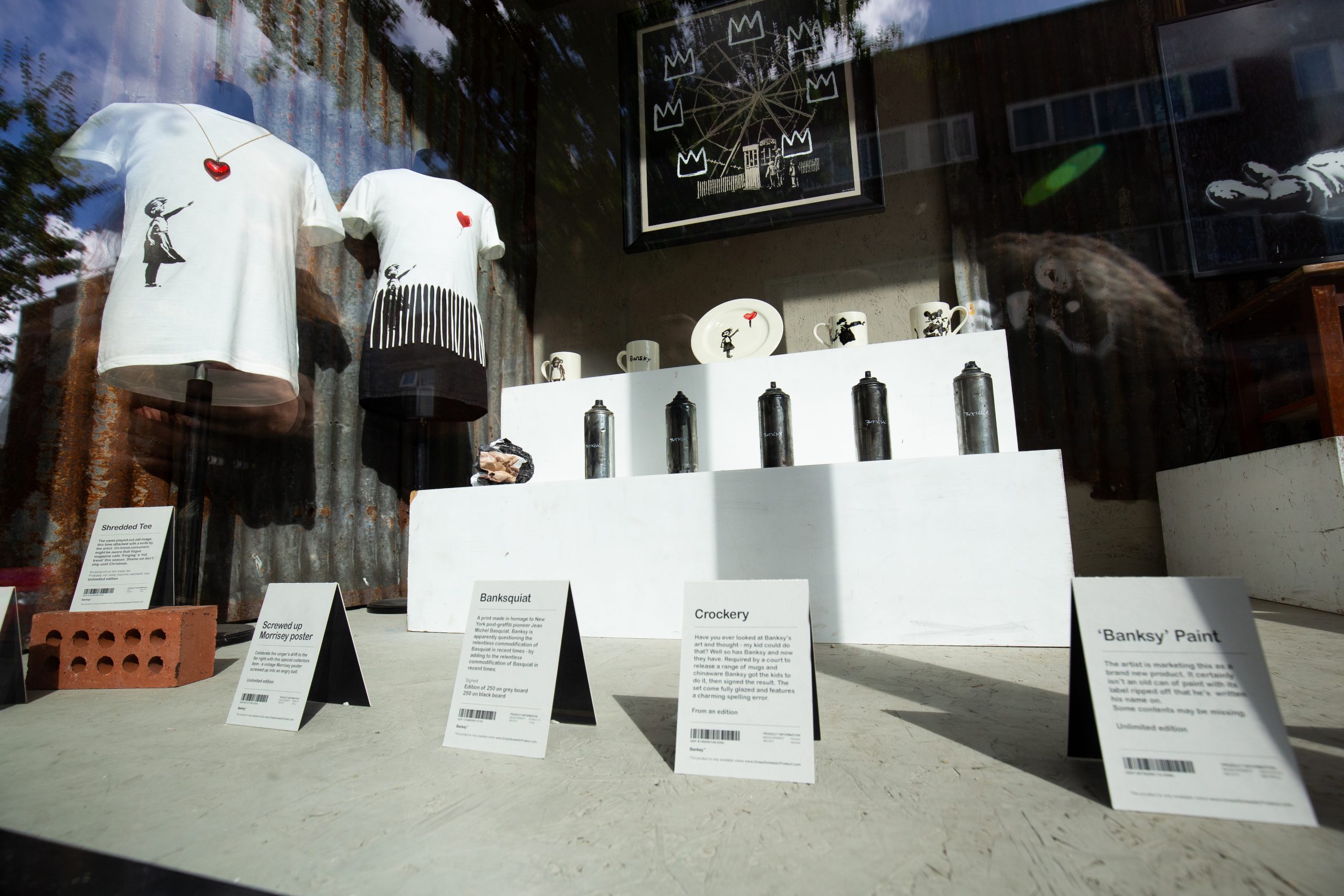 Art world provocateur Banksy has opened a pop-up shop/art installation in the London suburb of Croydon. The show is called Gross Domestic Product and it opened yesterday as a display in a former homewares store and will run for the next two weeks.