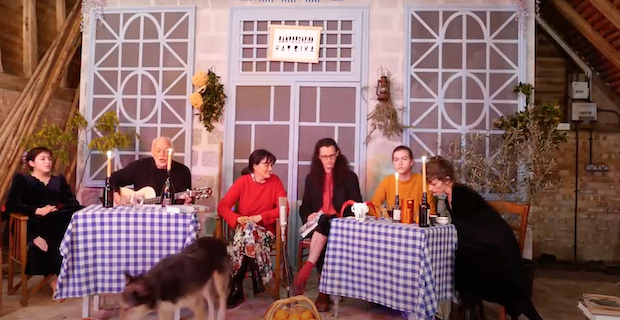 This month, David Gilmour's wife Polly Samson is releasing a new novel, A Theatre For Dreamers, which takes place on the Greek island of Hydra in 1960 and features Leonard Cohen as one of its characters -- Cohen lived there for real during the same time period. To promote the release of the book, Samson and Gimour and the rest of their family have been hosting a series of live broadcasts in which Gilmour plays a couple of songs.