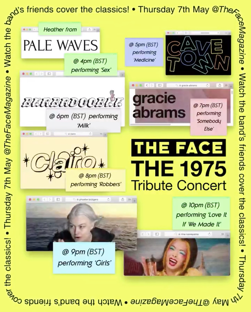 And as part of that same team-up with The Face -- which also included a cover story -- Healy has curated a group of musicians that covered different 1975 songs over on Instagram Live all day today. Phoebe Bridgers did "Girls," Rina Sawayama did "Love It If We Made It," Clairo did "Robbers," and there were also performances from Beabadoobee, Cavetown, Pale Waves, and Gracie Abrahams: