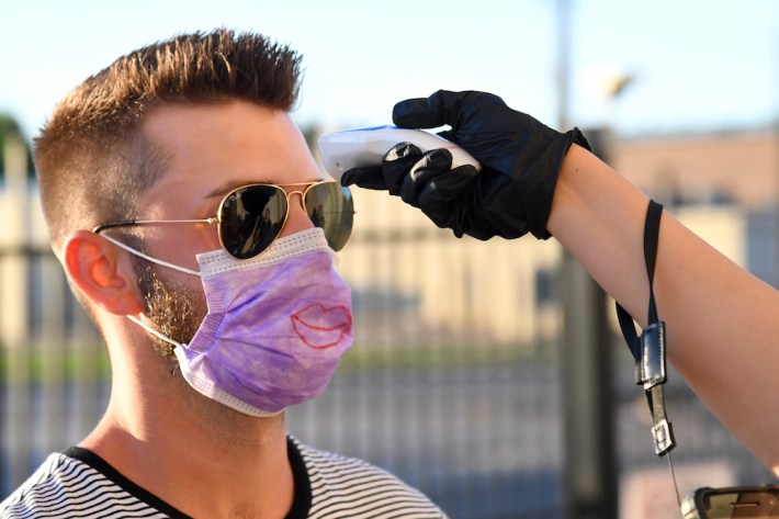 So: What does attending a concert look like during the coronavirus pandemic? Fans need to get their temperature taken at the entrance, while employees sanitize and wipe down railings and surfaces. Lists of rules are placed under cleaning bottles. Urinals and seats are roped off with caution tape to keep people separated enough, while symbols on the floor remind people to stay six feet apart. The venue has its own branded masks available. Below, you can see clips of McCready's and opener Lauren Brown's sets, as well as photos from the evening. And then you can decide for yourself: If this is what all live gigs will look like for the foreseeable future, just how excited are you to get back to seeing some music?