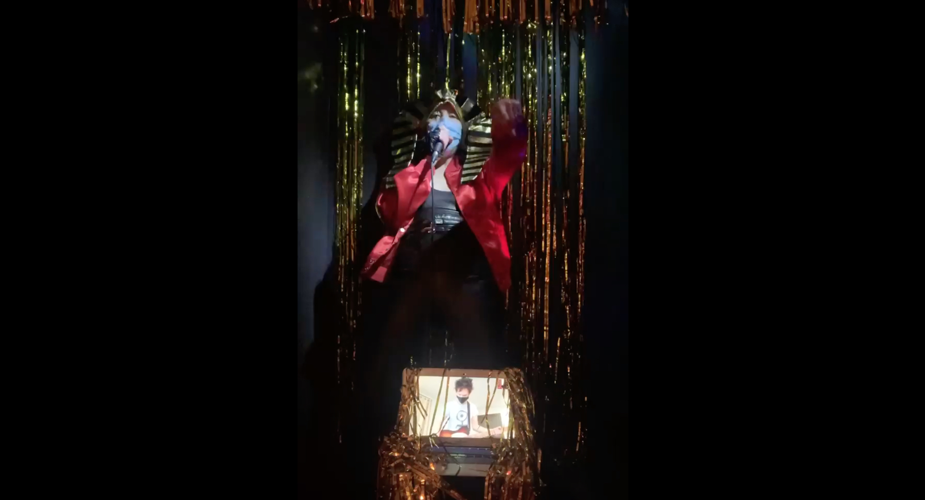 "Party anywhere (closet) anytime (any day of the week) safe at home," O wrote in the Instagram caption. The whole thing is still shot in Karen O's closet, but Zinner and Chase joined from the safety of their own homes on a laptop that was covered with tinsel. O started the performance in a pharaoh's hat. I respect the commitment to Party City supplies!