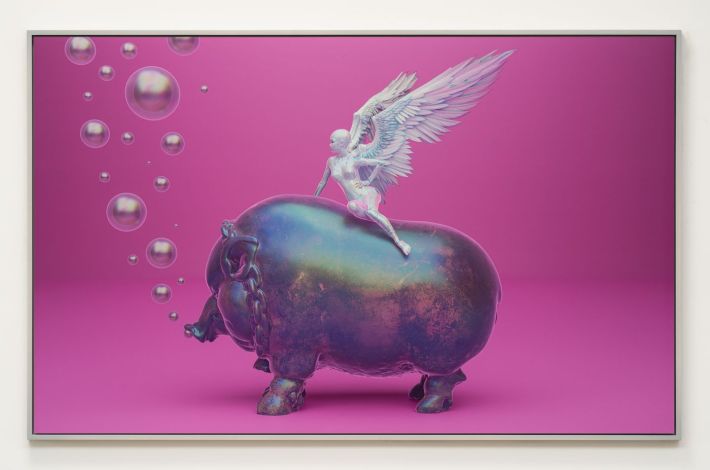 Grimes' prints come in editions of 30 and cost $500. Her ink-on-paper drawings range from $2000 to $3000. And archival pigment prints of digital works featuring the WarNymph avatar scanned from her own body run from $5000 to $15,000, depending on size. (There's also a video work, AI Meditations Led By WarNymph, for which a price has not yet been set.) All the art comes with a certificate of authenticity.