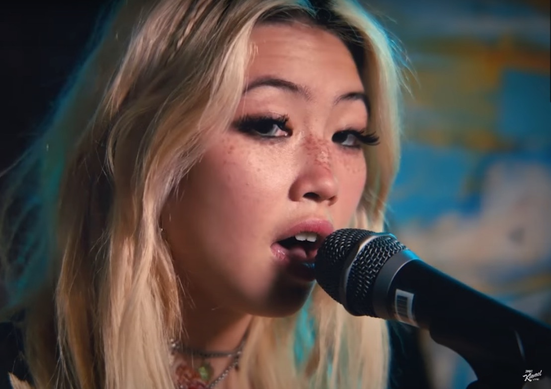 This year, Bea Kristi did the impossible. The young UK woman known as beabadoobee found her way to major-label quasi-stardom by riffing on the sound of mid-'90s alt-pop, something that I never thought would happen again. Last month, after months of advance singles, beabadoobee finally released the much-anticipated debut album Fake It Flowers. And last night, she and her band ripped their way through "Care" as musical guests on Jimmy Kimmel Live.
