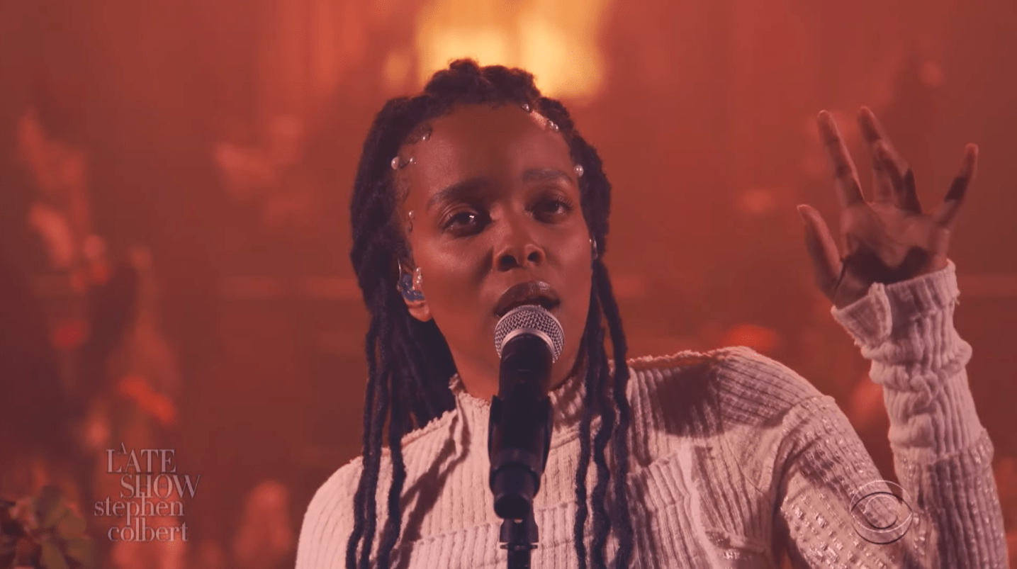 "On a difficult night, we thought we would end with a beautiful song." That's how Stephen Colbert introduced Jamila Woods' performance of "SULA (Paperback)," the Toni Morrison-inspired single she released last summer, on last night's Late Show. He wasn't kidding.