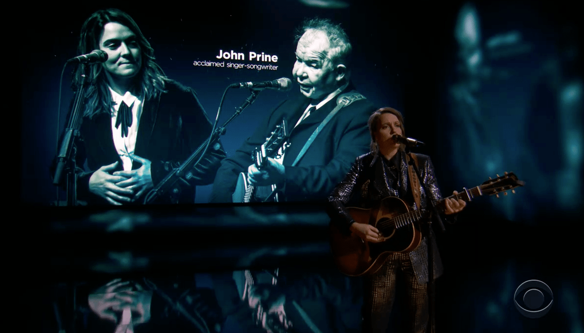 One of the great losses in music since last year's Grammys was the death of legendary singer-songwriter John Prine from COVID-19. The Recording Academy honored Prine today with wins in the Best American Roots Song and Best American Roots Performance categories for "I Remember Everything," his final song. And they continued to honor him on tonight's telecast with a tribute performance by Brandi Carlile, a winner today as well. (Her supergroup the Highwomen won Best Country Song for "Crowded Table.")