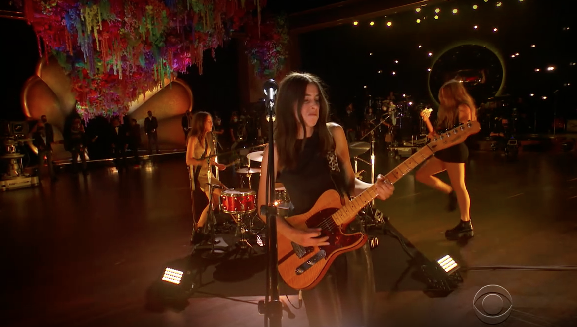 One of the pleasant surprises when this year's Grammy nominations came out was Haim's Album Of The Year nod for their truly great Women In Music Pt. III. Early on in tonight's broadcast, right after Harry Styles and Billie Eilish, performed, the Haim sisters played the album's hard-slapping single "The Steps." Watch their performance below.