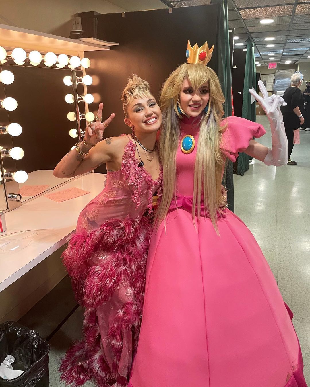 In the aftermath of the show, Cyrus posted some photos of herself with Grimes in her Princess Peach costume captioned "She’s not a princess. She’s a queen." Now Grimes has shared the same pics with her own assessment of the experience. With preemptive apologies to her fans, who she believes the comment will upset, she says in an Instagram caption that "my beautiful E" killed it. Cyrus is "good live and so chill!" (On Twitter she adds that Miley is "extremely siqué at music and as a human.") And in less exciting news, she leads off the Instagram caption by saying she was hospitalized for a panic attack Monday.