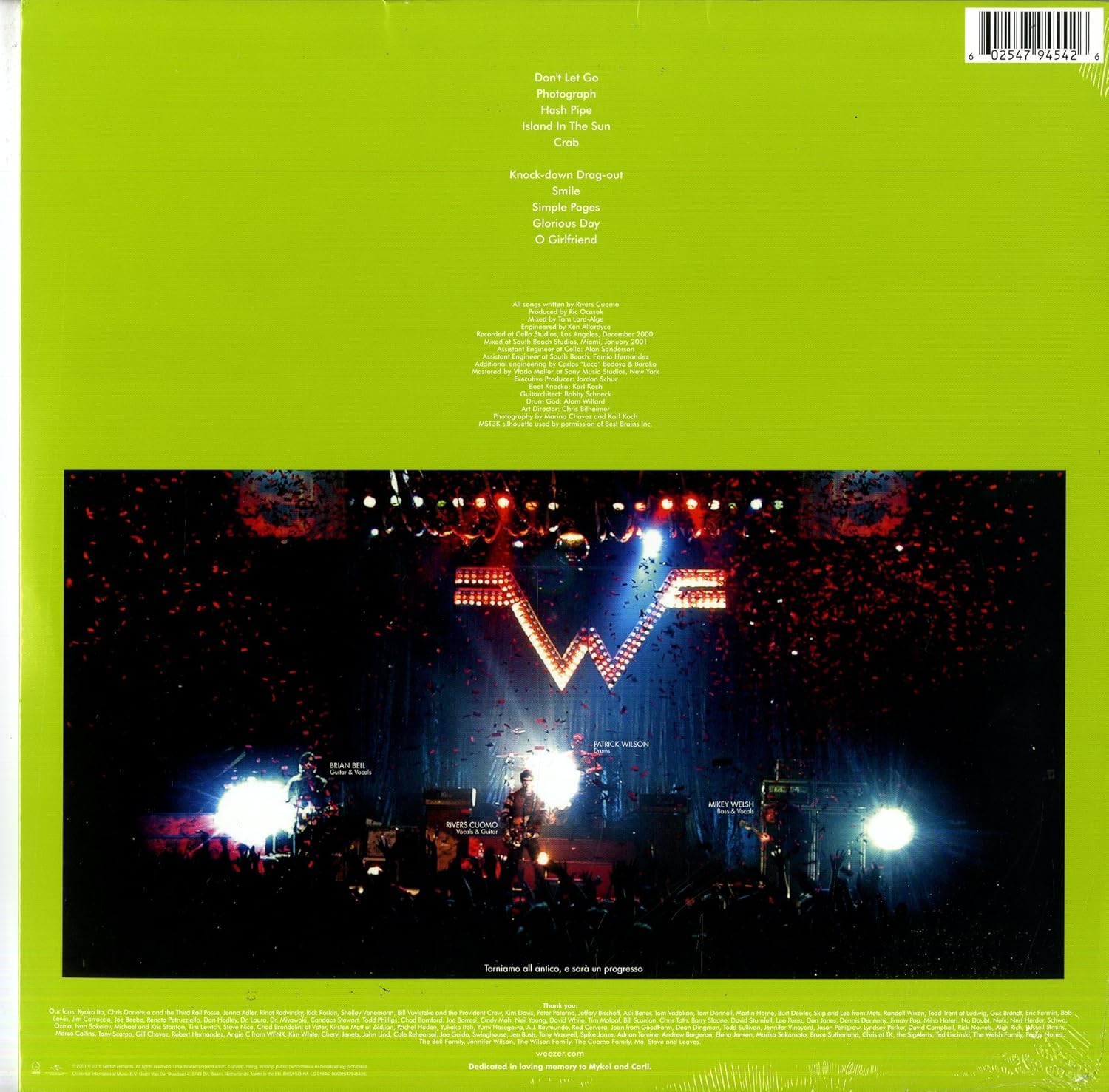 With its lack of sonic variety, lightning-short 28-minute runtime, and lyrics so generic that even Cuomo would admit they were largely about nothing ("The lyrics suck," he told CMJ), "The Green Album" was a new kind of betrayal for Weezer superfans. For those of them coming together in massive numbers due to the cult of Pinkerton and the spread of internet communities, it felt like a cruel joke to hear the almost robotic pop of "Don't Let Go" at the beginning of the record -- for this to be the long-awaited return of a band that had grown to a mythical status.