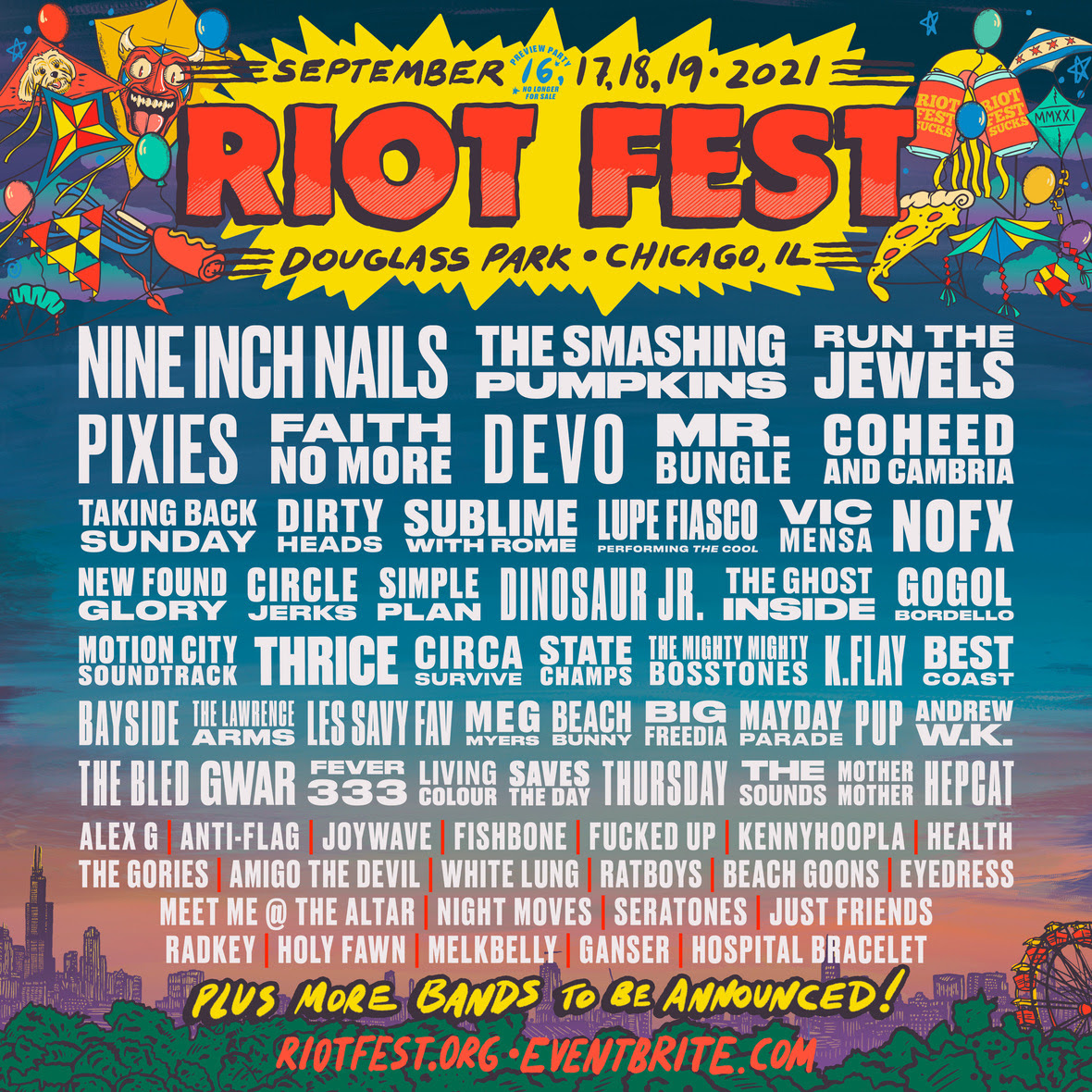 The fest is going down Sept. 17-19 at Douglass Park in Chicago, with a "preview party" set for Sept. 16. You can buy tickets for both the 2021 and 2022 editions of Riot Fest, or transfer your 2021 admission to next year, at this link.