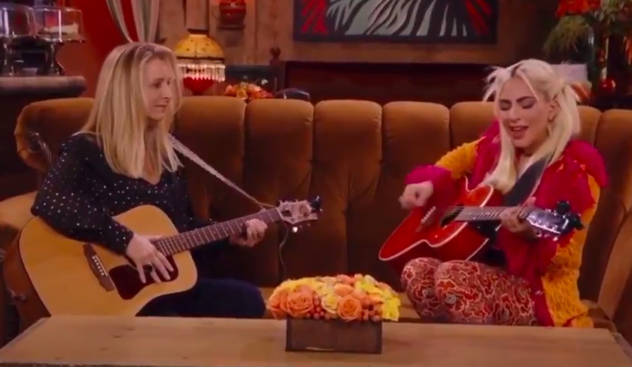When HBO Max launched last year, one of its marquee attractions was supposed to be a reunion of the cast of Friends, and each of the cast members reportedly got paid millions to do it. Now, after a solid year of pandemic-related delays, that Friends reunion is finally up on HBO Max. It's got James Corden interviewing the show's cast on a recreated version of the Friends set, and it's also got a few famous guests. One of those guests is Lady Gaga, who sings "Smelly Cat" with Lisa Kudrow.
