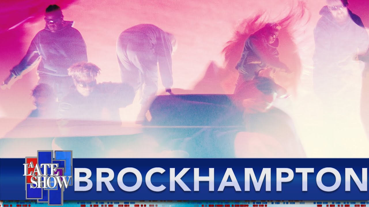 Brockhampton released their new album Roadrunner: New Light, New Machine last month, and the album's big singles are the ones with big-name guests: Danny Brown on "Buzzcut," A$AP Rocky on "Count On Me." (There's also a "Count On Me" video with Lil Nas X.) Rather than performing one of those songs on Colbert, Brockhampton did the album's intense deep cut "Don't Shoot Up The Party."
