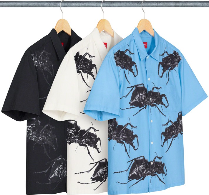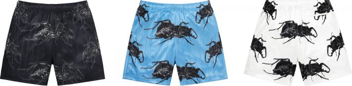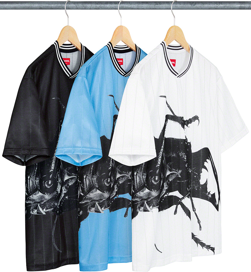 Is your band really a marketable global brand if it hasn't collaborated with Supreme yet? Massive Attack is joining those ranks this week, when the streetwear brand will release an apparel collection featuring the beetle from the group's Mezzanine album art. There will be soccer shirts (viewable above), short-sleeve button-downs, and shorts, each in a trio of colors. The prices haven't been revealed yet, but Supreme's next merch drop is scheduled for this Thursday, June 17.