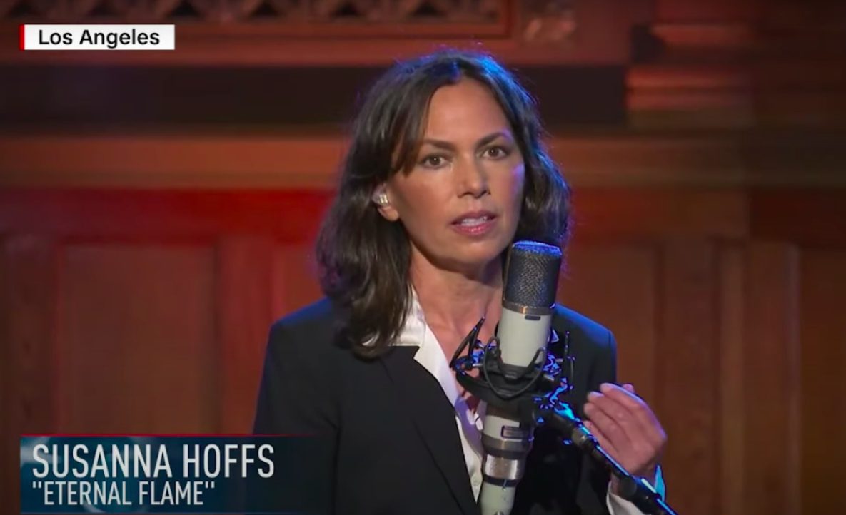 Hoffs continues to sound great, and those string-quartet versions of the Bangles' hits were cool. CNN intercut Hoffs' performance with footage of fireworks going off, which was silly. Watch it happen below.