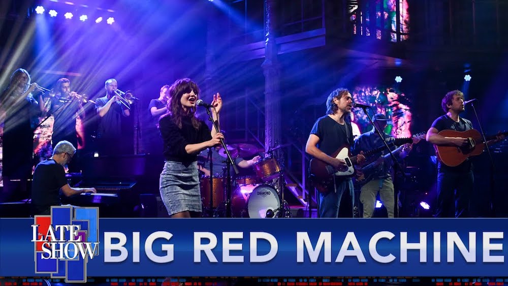 Later this month, Big Red Machine, the duo of Bon Iver's Justin Vernon and the National's Aaron Dessner, will release their sophomore album How Long Do You Think It’s Gonna Last? The LP features a whole lot of collaborators, including Taylor Swift, who shows up on a couple of tracks, including the single "Renegade." Last night, Big Red Machine appeared on Stephen Colbert's Late Show to play a couple of songs from the album, including one that hasn't been released yet. They brought along a couple of friends to help out.