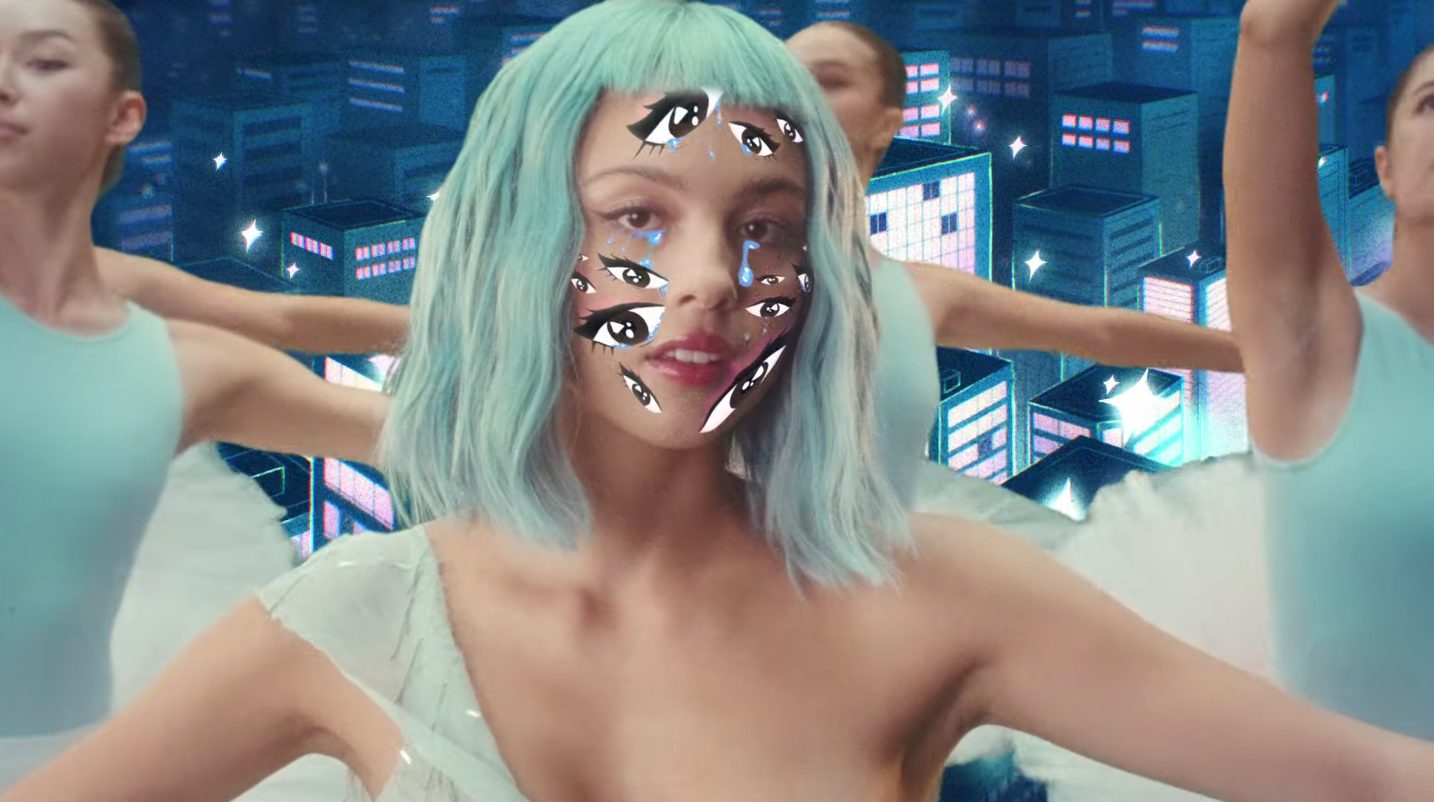 The "brutal" video is suitably chaotic. It is, I guess, about personas, and media scrutiny, and a ballet-themed video game, or something? And various animations pop up on Rodrigo's face throughout? And it makes me feel like I'm having a surreal flashback to Y2K-era cable TV? I can't pretend to understand what I'm seeing here, but maybe someone can interpret it for me below.