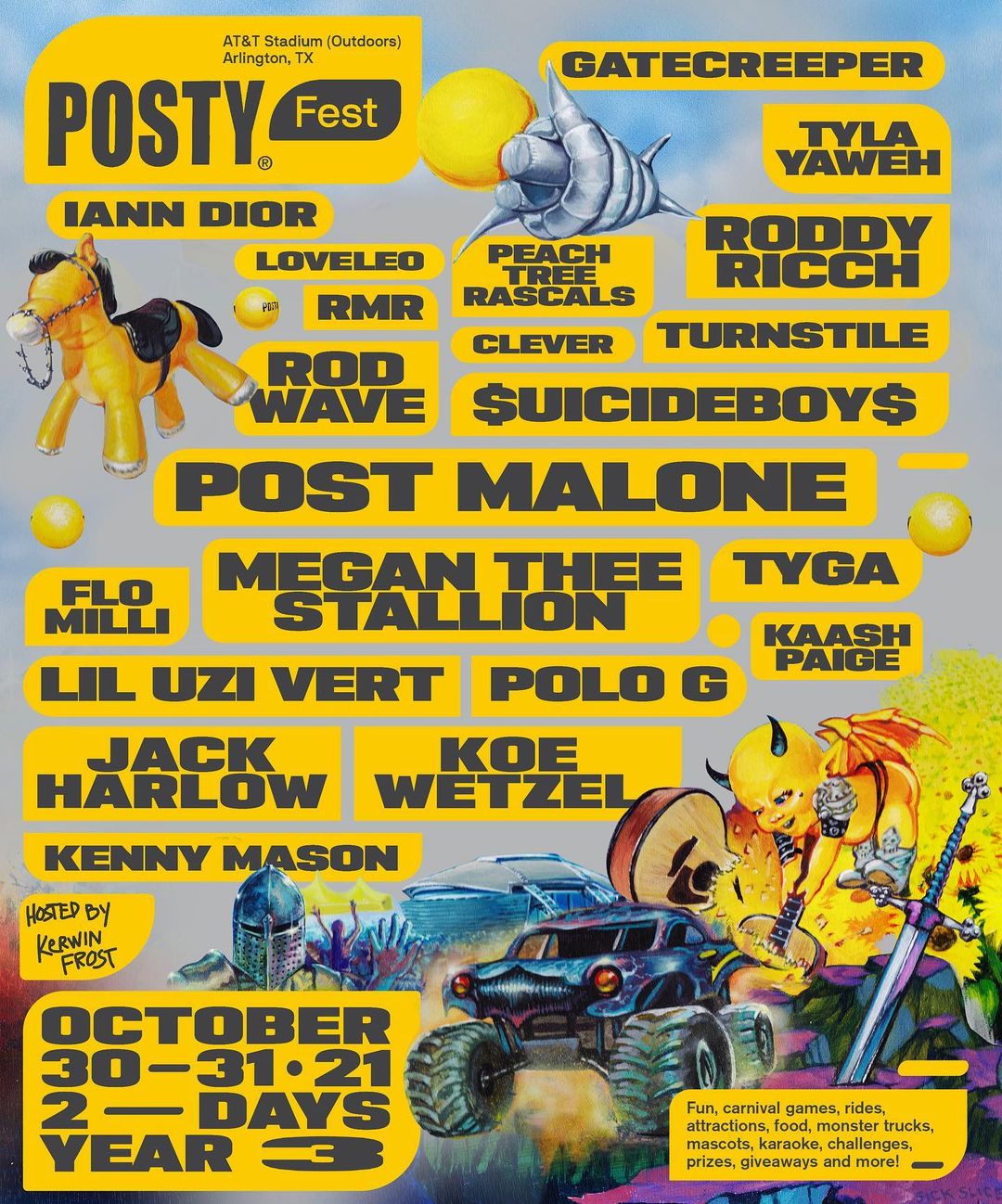 Post Malone will headline this year's edition of Posty Fest alongside fellow Texan superstar Megan Thee Stallion. As with previous years, the top of the lineup is full of rap and rap-adjacent heavy hitters: Lil Uzi Vert, Roddy Ricch, Jack Harlow, Rod Wave, Tyga. But things get more interesting further down.