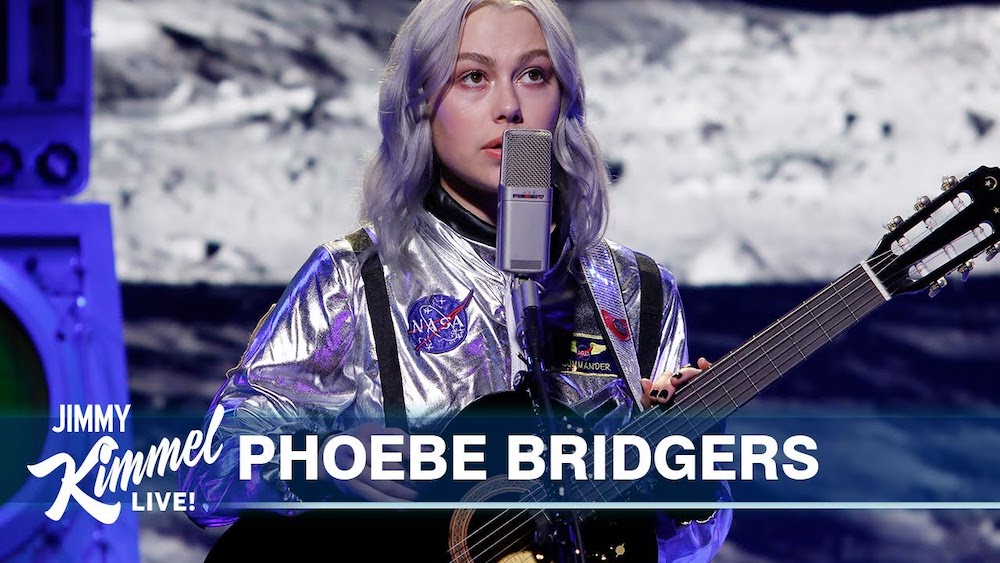 Phoebe Bridgers' sophomore album Punisher is now almost a year and a half old, but that motherfucker has legs. Bridgers is still out on the promo circuit. Last night, Bridgers was the musical guest on Jimmy Kimmel Live. It wasn't her first time playing a Punisher song on Kimmel, but it was her first time playing a Punisher song in the Kimmel studio. (The last time Bridgers was on Kimmel, in April of 2020, she was singing "Kyoto" in her bathtub.)