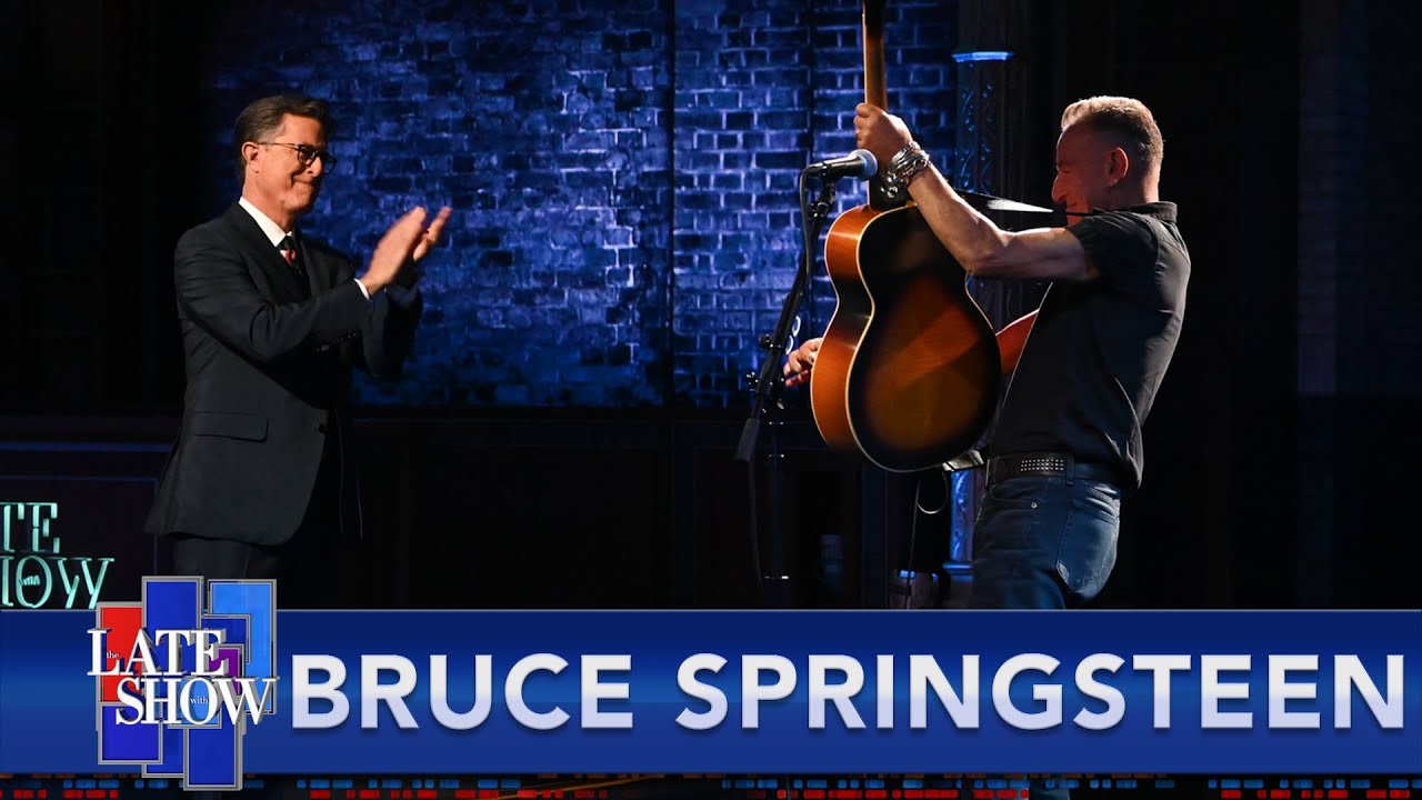 Bruce Springsteen has had a whole lot going on lately. His Broadway show came back. He made a podcast and a book with Barack Obama. He's made recent collaborations with the Killers and John Mellencamp and Dion. He's getting ready to release The Legendary 1979 No Nukes Concert, a live film and album recorded 42 years ago at Madison Square Garden. His daughter just won a damn silver medal at the Olympics. And last night, Springsteen sat down with Stephen Colbert for the better part of an hour to talk about a whole lot of it.